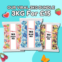 Calling all sweet fanatics! Indulge in a super sweet treat with our Jelly, Fizzy, and Blue bundle – a whopping 3kg of pure sugary bliss for only £15!