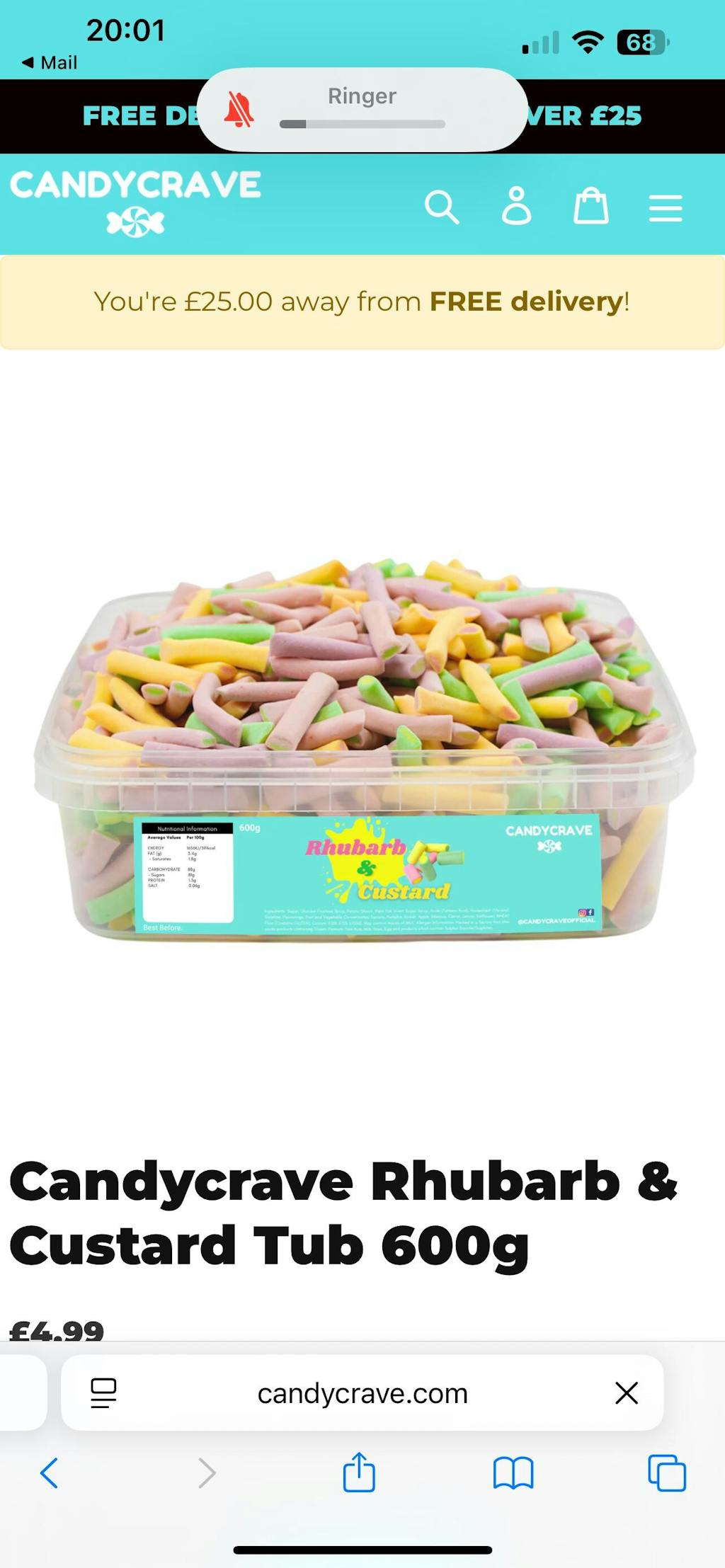 Candycrave Rhubarb & Custard Tub 600g